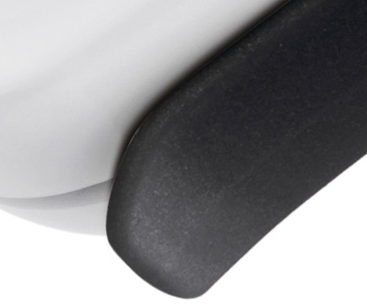 Молочно-белый цвет в мире гарнитур явление редкое, даже уникальное. Основной материал корпуса приятен на ощупь: он гладкий, напоминает керамику. Единственная клавиша расположена на внешней стороне девайса. Она сливается с поверхностью лицевой панели, которая выполнена из тонкого пластика. В комплекте поставляется набор обручей: черный, желтый, розовый и коричневый, которые легко меняются и служат не столько элементом декора, подчеркивающим стиль хозяина, сколько частью общей конструкции, а точнее – дужки. Крепится обруч с обеих сторон корпуса, внизу, но в одетом состоянии крепление остается одно, второе же оказывается за ухом. Материал дужки неломкий, довольно гибкий, чуть шероховатый. Удобство такого решения спорно: с одной стороны, гарнитура становится предельно компактной в сложенном состоянии, с другой – эргономичность такой дужки-трансформера могла бы быть и лучше. Резиновый контур динамика, разумеется, помогает корпусу лучше держаться в ухе и фильтровать посторонние шумы, но, например, при беге или резком движении девайс можно потерять.