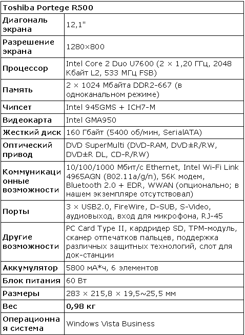 В рамках серии Portege компания Toshiba выпускает ноутбуки с повышенной «мобильностью». Это, как правило, миниатюрные модели с расширенными функциями. Именно таким и является рассматриваемый R500.