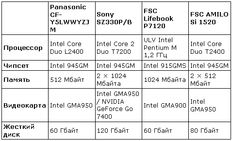 Часть этих мобильных ПК основана на прошлом поколении платформы Centrino, однако потенциально их процессоры быстрее, чем Core 2 Duo U7600, установленный в R500. Только FSC Lifebook P7120 построен на базе совсем устаревшего ULV Pentium M. Впрочем, данный ноутбук в свое время показал превосходные результаты по времени автономной работы, поэтому он вполне может быть противопоставлен современному Toshiba R500.