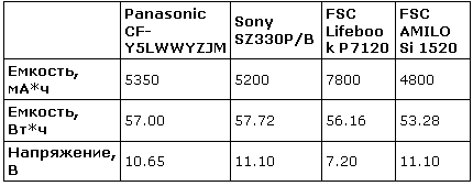 В сравниваемых ноутбуках установлены аккумуляторы следующей емкости: