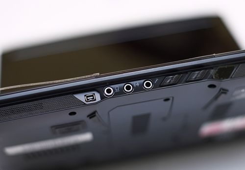 Необходимые коммуникационные разъемы, которыми щедро «усыпаны» бока карбонового красавца, расположены вполне оптимально. Слева находятся разъем сетевой карты, два USB-порта и выход PCMCIA, справа — гнездо модема, еще один порт USB, кардридер и щелевой супермультиформатный DVD-привод. Кардридер тоже отличается «всеядностью» и поддерживает карты памяти стандартов SD/MMC/MS/MS PRO/xD. Спереди, под выпирающей кромкой рабочей панели, размещены разъемы для микрофона и наушников, порт IEEE 1394 и два «горячих» переключателя, которые отвечают за работу модулей Wi-Fi и Bluetooth. А рядом с ними — о чудо! — такой милый сердцу анахронизм как инфракрасный порт. Порадовали своим наличием разъем S-video и порт VGA, которые находятся сзади.
