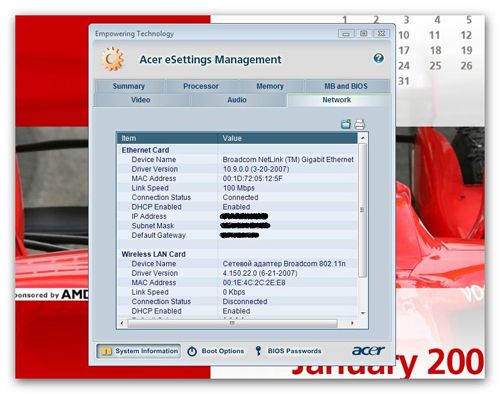 eSettings Management предоставляет подробную информацию о системе, комплектующих, сетях и т. д. К тому же эта утилита может в «горячем» режиме без перезагрузки лэптопа устанавливать пароль на BIOS и выставлять приоритеты загрузки.