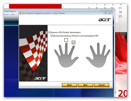 На страже конфиденциальности стоит биометрический сенсор, который ограничивает доступ к лэптопу по отпечатку пальцев. А утилита eData Security создает защищенный раздел диска: перемещаемые в него данные шифруются на лету. Размер раздела можно задать самостоятельно. Доступ к нему осуществляется только путем ввода пароля или при помощи вышеупомянутого биометрического сенсора. Кстати, этот сенсор можно поставить на защиту запуска определенных приложений, тем самым окончательно закрыв доступ к запуску, например, ICQ.
