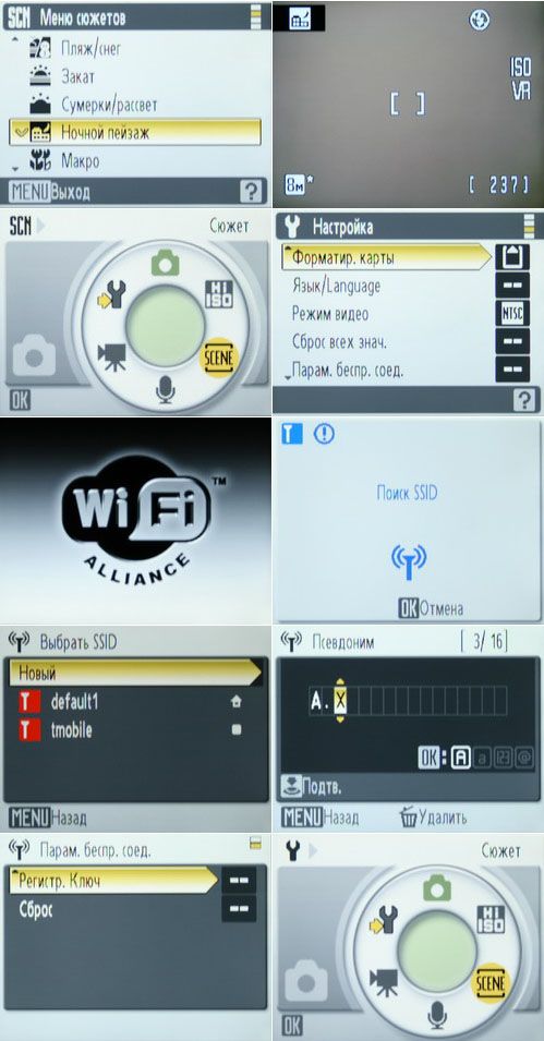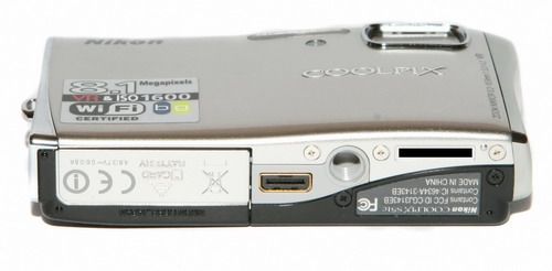 Работа Wi-Fi сопровождается миганием голубого светодиода сбоку камеры. Снимки загружаются в my Picturetown, это полезно как функция фотобанка, особенно если у вас нет доступа к компьютеру, но зато есть Wi-Fi. На камере можно настроить адреса E-mail, на которые будет направляться уведомление о новых фотографиях на вашем аккаунте в my Picturetown. Работа передатчика особых нареканий не вызвала, но он, конечно, слабее, чем в тех же ноутбуках: там, где ноутбук уверенно показывал три-четыре палки, Coolpix S51c показывал одну—две.