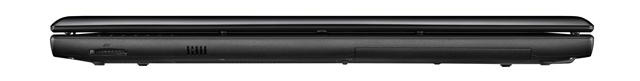Левый торец упакован гораздо плотнее. Здесь находится разъем для блока питания, VGA-выход, сетевой разъем RJ-45, HDMI, USB-порт, совмещенный с eSATA, разъем USB, который позволяет заряжать различные мобильные устройства даже когда ноутбук выключен, но работает от сети, два 3,5-миллиметровых аудиоразъема для микрофона и наушников и слот ExpressCard.