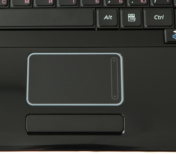 Тачпад имеет такое же соотношение сторон, что и дисплей — 16:9. Он довольно гладкий и в меру чувствительный. Когда работаешь с сенсорной панелью, она подсвечивается по периметру нерезким голубым цветом. Если же оставить тачпад на несколько секунд в покое, то подсветка погаснет. Кнопки при нем выполнены в виде единого модуля. Каждая из них нажимается четко и без усилий.