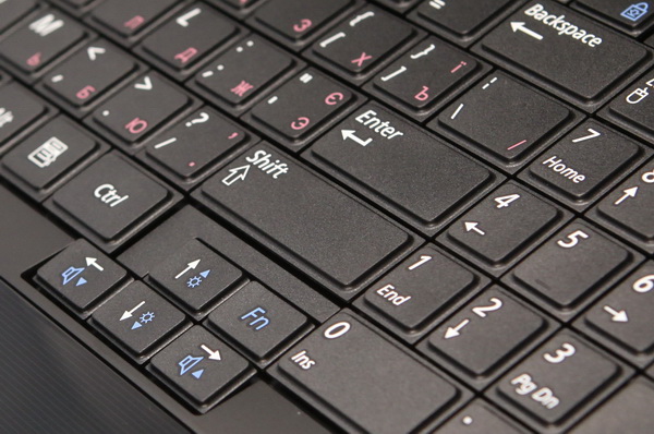 Разработчики Samsung оборудовали данную клавиатуру двумя клавишами Fn. Одна находится в нижнем левом углу, а вторая — около навигационных стрелок. Такое расположение позволяет без труда регулировать громкость и яркость дисплея при помощи одной руки. Посредством функциональных клавиш можно вызвать менеджер параметров батареи (Fn + F2), полностью отключить подсветку экрана (Fn + F5), вызвать утилиту Samsung Magic Doctor (Fn + F7), переключить режим работы ноутбука.