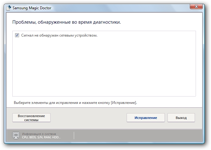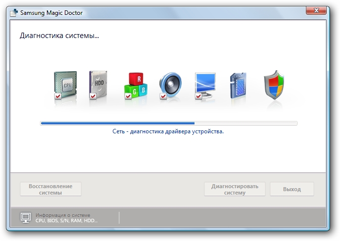 Samsung Magic Doctor — утилита для диагностики всех подсистем компьютера. Она сканирует ноутбук на ошибки и затем предлагает варианты их устранения.