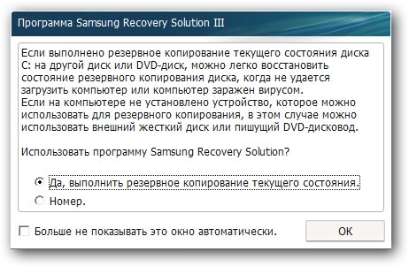 Samsung Recovery Solution III — программа по резервному копированию и восстановлению системы, использующая скрытые разделы на винчестере.