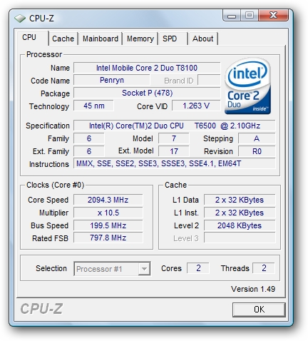 В отличие от своих десктопных сородичей мобильные Core 2 Duo работают при более низком напряжении питания, а также обладают более низкой частотой системной шины (667 МГц против 1066 МГц). За счет этой разницы производительность мобильного процессора будет на 20-25% ниже, чем у процессора для стационарного ПК с такой же тактовой частотой.