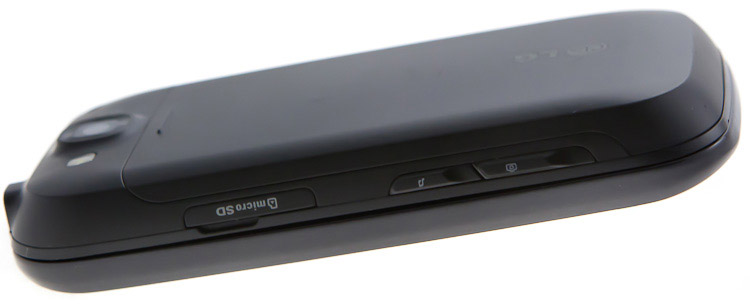 Правый торец обладает слотом для карт памяти microSD, в нижней части находятся выделенные клавиши для запуска аудиоплеера и камеры. Такое насыщенное наполнение боковых поверхностей встречается сегодня не так и часто — оно еще раз подчеркивает в GW620 в первую очередь функциональную (а не имиджевую) составляющую.