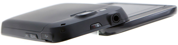 Коммуникатор оснащен внушительным количеством дополнительных элементов. На верхнем торце, помимо упомянутой клавиши включения, находится 3,5-миллиметровый аудиоразъем. На левом торце расположен прикрытый заглушкой microUSB-джек и клавиши регулировки громкости под ним.