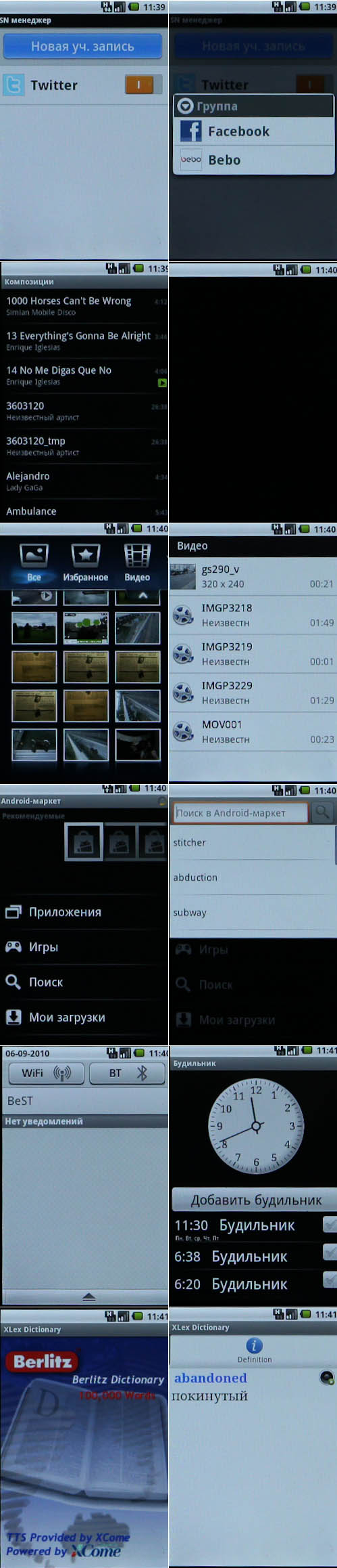 Как и в других коммуникаторах на базе Android, в GW620 представлен полный комплект для работы с основными сервисами Google — почтой и чатом, картами и календарем. Через основной почтовый ящик происходит и вход в библиотеку приложений Market.