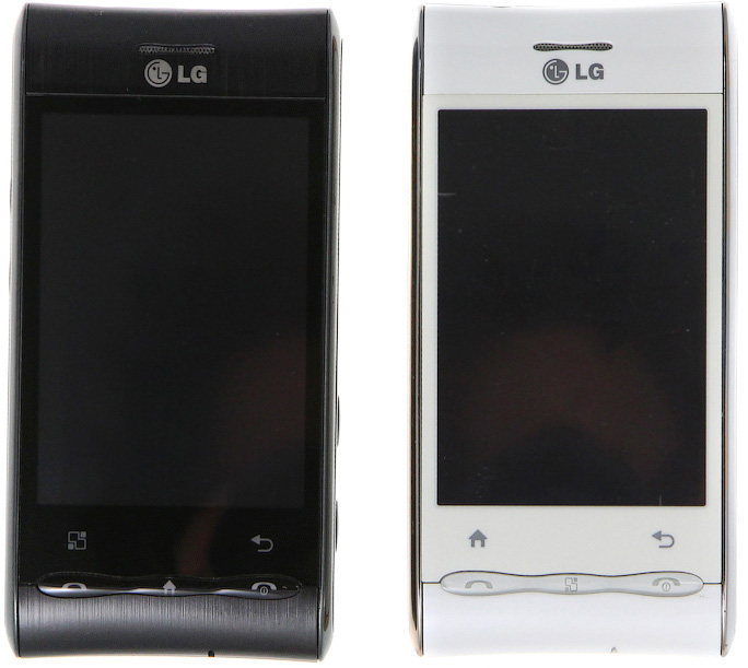 Как упоминалось выше, Optimus предлагается в нескольких цветовых вариантах. В наше распоряжение попали экземпляры с основным белым и черным цветом корпуса. Белый GT540 отличается тем, что крышка его аккумуляторного отсека украшена рифленым (только визуально, на ощупь панель гладкая) узором, в черном исполнении такого нет. Также можно заметить небольшое различие в используемых материалах: в белом варианте это глянцевый пластик, в то время как в черном — более практичный soft-touch.