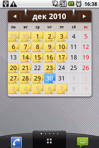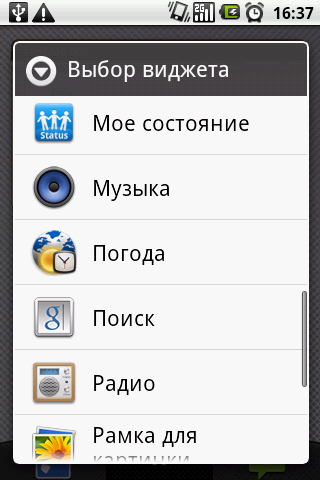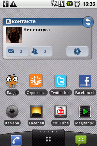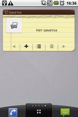 Вне зависимости от выбранного интерфейса набор доступных виджетов не меняется. В GT540 с версией 1.6 не предусмотрен расширенный набор мини-приложений для рабочего стола, изначально пользователь может рассчитывать лишь на стандартный набор. В более современной редакции ПО владелец телефона получает несколько полезных дополнений, в частности удобный виджет заметок (можно создавать несколько страниц, сортируя различные комментарии) и социальной сети «ВКонтакте» (если пользователь привык часто к ней обращаться, виджет сообщит о новых уведомлениях).