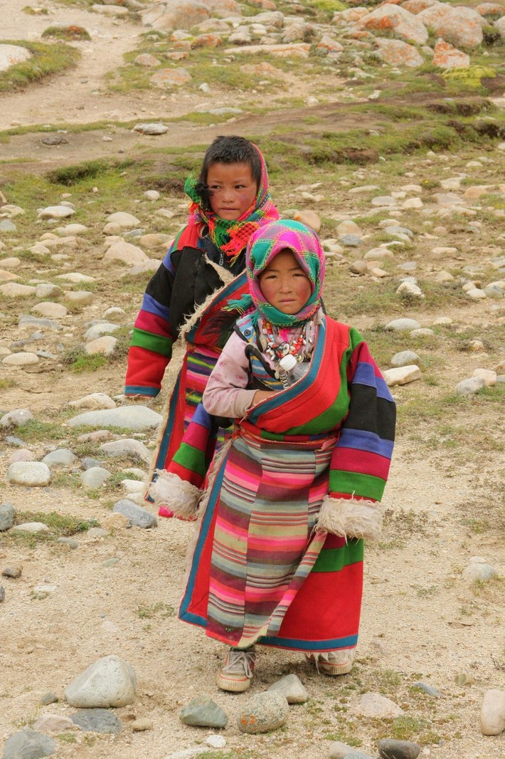 На утро мы ступаем на тропу, по которой проходят все паломники, — для совершения Коры вокруг Кайласа. Тибетцы идут целыми семьями, вместе с детьми.