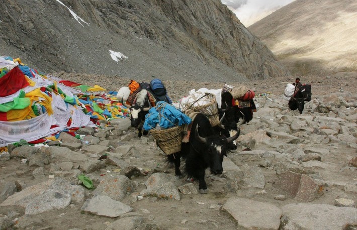 Чтобы не нести на своих спинах тяжелые рюкзаки, иностранные паломники обычно делят свою карму с яками: