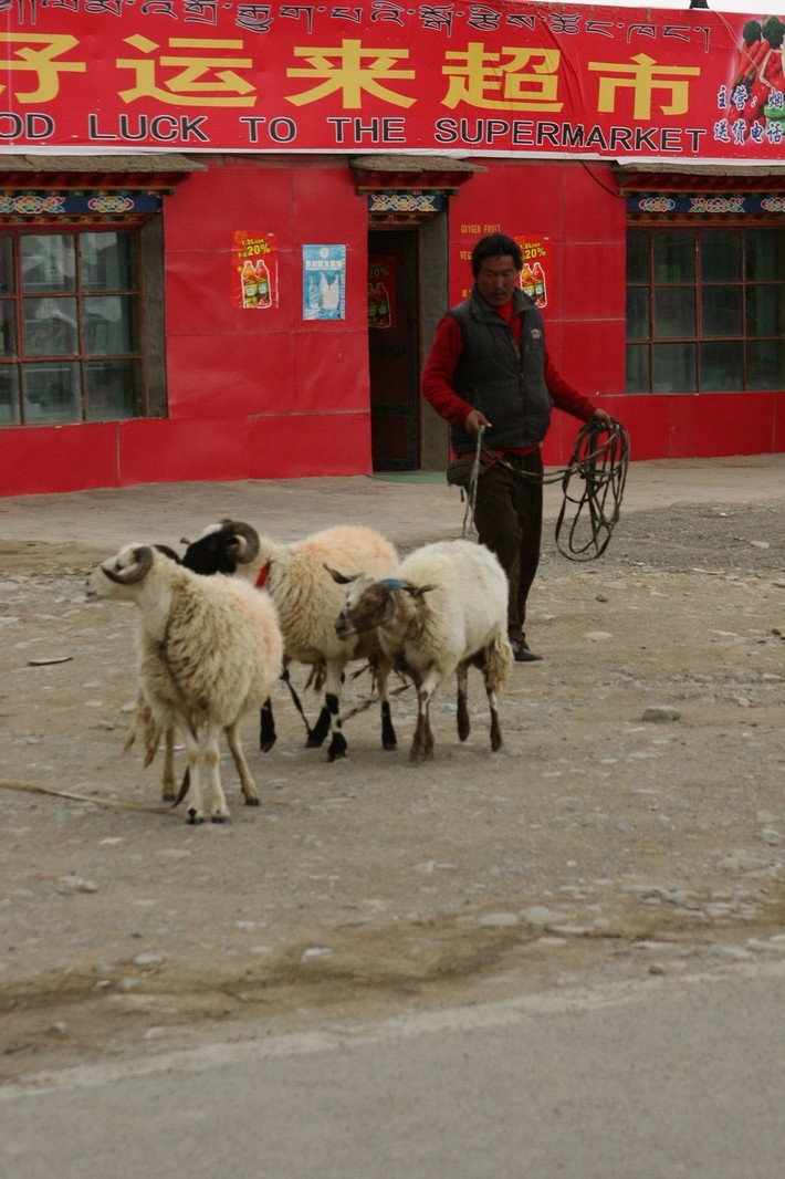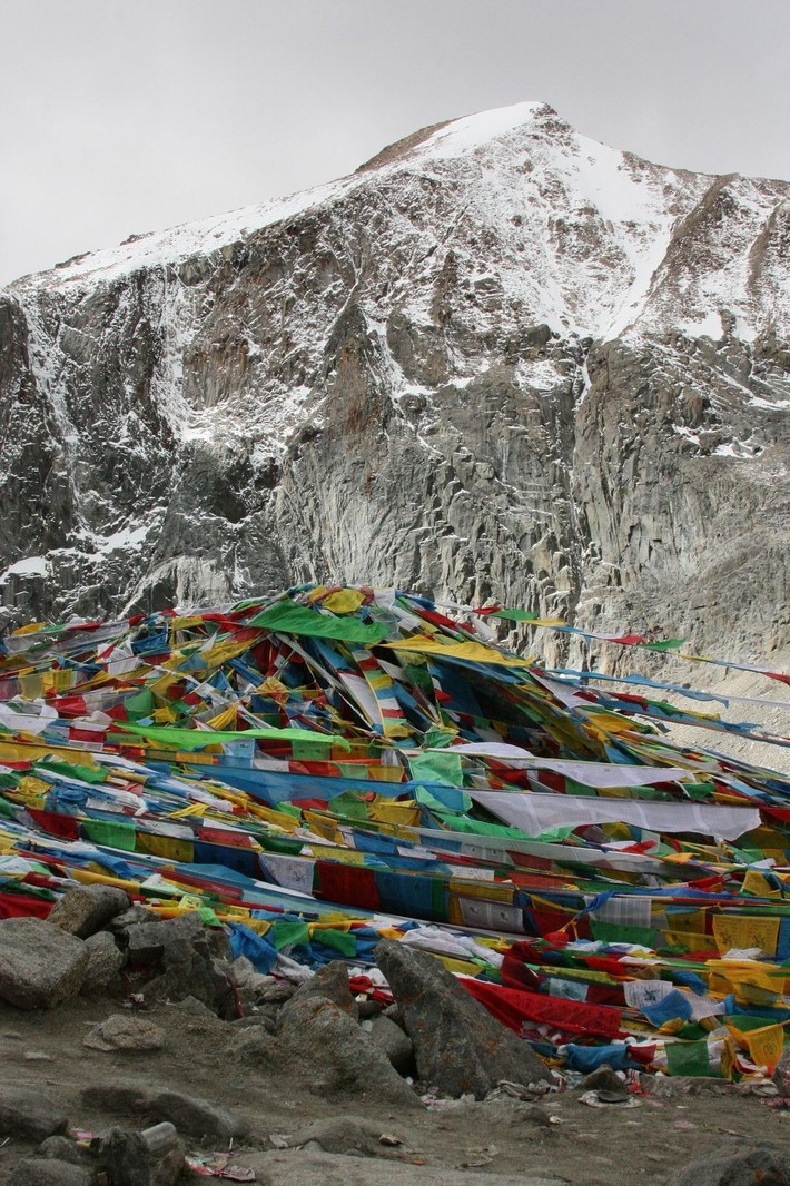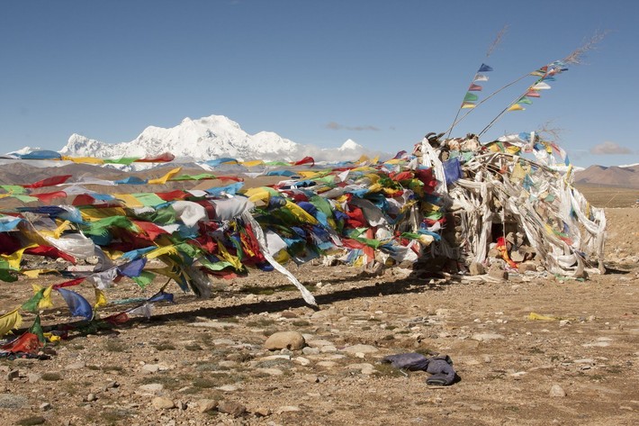 Еще день тряски в джипах, и мы достигаем цели нашего путешествия — Дарчен у подножия Кайласа, который встретил нас одноэтажными коробками-бараками, лавками с сувенирами и мусором. Повсеместные вывески на китайском и английском языках приглашали в гестхаузы и кафе.