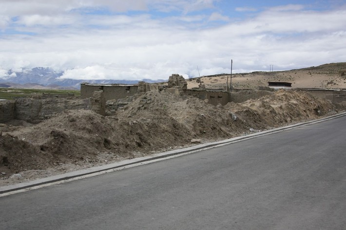 Один раз водитель нашего джипа проигнорировал объезд и поехал прямо по отличному асфальту. Итог: нас остановили, у водителей отобрали документы (с неприятной сценой рукоприкладства со стороны военных) и отправили их подметать асфальт на три часа. Наше возмущение, что мы являемся туристами, да еще и из дружественной Беларуси, было проигнорировано. И под палящим тибетским солнцем нам пришлось ждать, пока они не закончат свою работу. Продолжая путешествие, не раз приходилось видеть, как построенные дороги проходили через жилые дома, оставшиеся стены которых не успели еще снести.