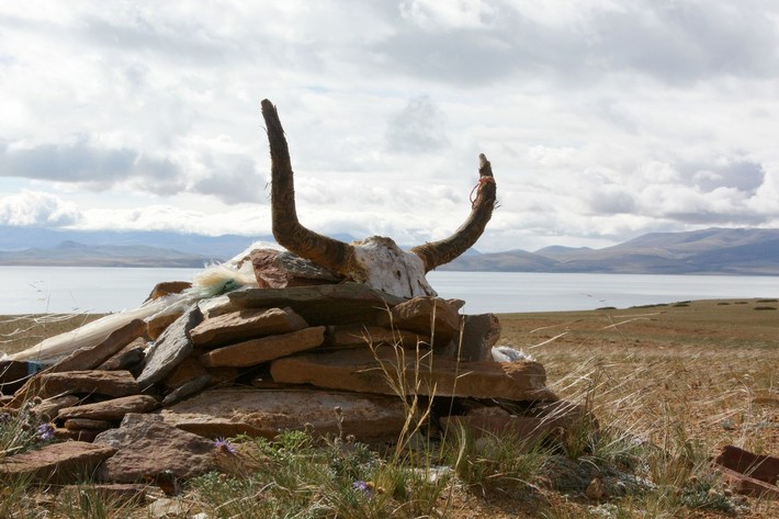 На пятый день наших приключений мы достигли озера Манасаровар — второго по значимости после Кайласа места этого региона. По индуистской традиции купание в нем освобождает от всех грехов, а для буддистов это озеро считается особо священным: они ассоциируют его с легендарным озером Анаватапта, где королева Майа зачала Будду. Согласно религиозным традициям, Манасаровар является воплощением света, а расположенное рядом и соединенное по протоке Ракшас Тал — озером Силы и противостояния, озером демонов Тьмы. Но силы света и тьмы не противопоставляются друг другу, а дополняют одна другую, что необходимо для жизненной завершенности.