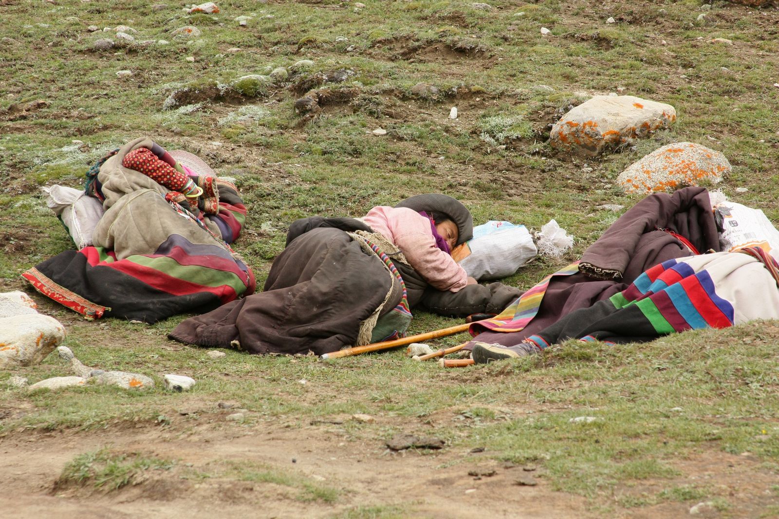 Отдыхающие возле тропы паломники: