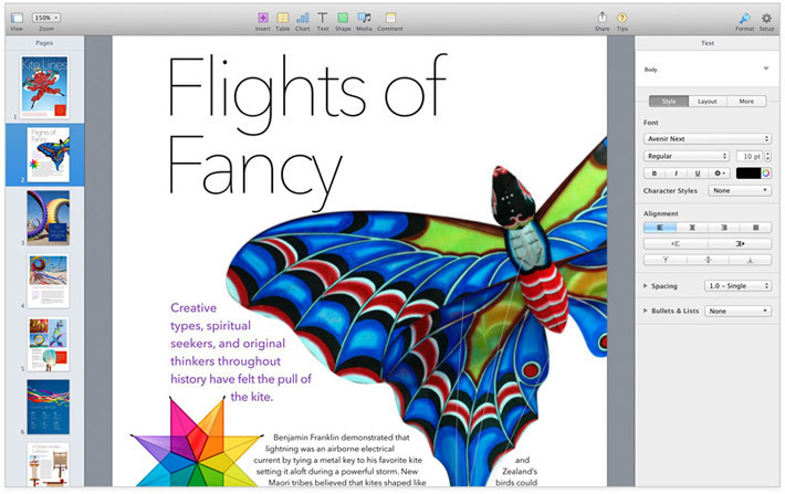 На презентации вспомнили про пакет приложений iWork: программы Pages, Numbers и Keynote получили новый интерфейс, реализована возможность совместной работы через «облачный» сервис iCloud. Пакет iWork доступен бесплатно при покупке iOS-устройства или компьютеров Mac.