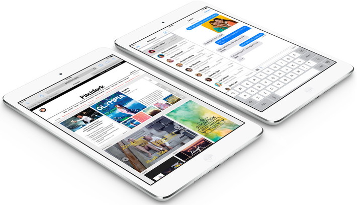 Не остался без внимания и iPad mini. Второе поколение планшета ожидаемо получило экран Retina с разрешением 2048×1536 (326 ppi) и чип А7. Высота и ширина новинки остались прежними, а толщина увеличилась с 7,2 до 7,5 мм. Устройство потяжелело на 30 г.