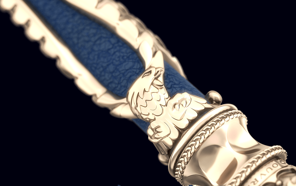 Драгоценные моноподы выполнены по эскизам французской художницы Инны Битон и украшены бриллиантом весом 2,2 карата. Внешний вид, казалось бы, обыденных вещей вдохновлен экстерьером короны последнего монарха Франции Наполеона III, утверждает официальный сайт OUVRI. Самый дорогой монопод оценивается в 49 000 долларов, выполнен из кожи теленка синего цвета, серебра 925-й пробы с покрытием из желтого золота.