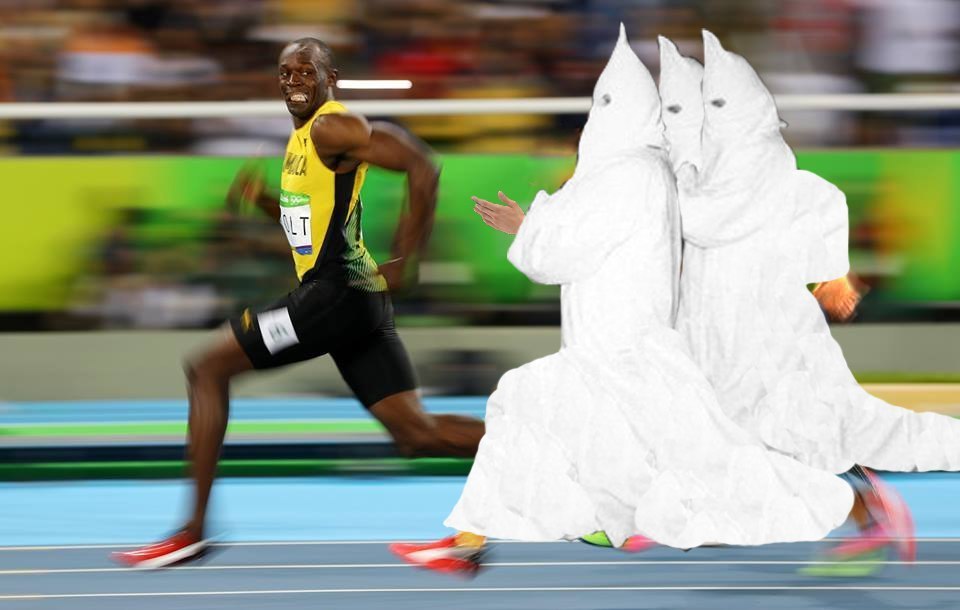 Одним из главных кадров Олимпиады называют снимок улыбающегося во время забега Усэйна Болта. Многократный чемпион легко убегает от своих соперников и даже успевает обернуться и одарить их своей лучезарной улыбкой. Непобедимый Болт мгновенно превратился в повод для шуток в интернете.