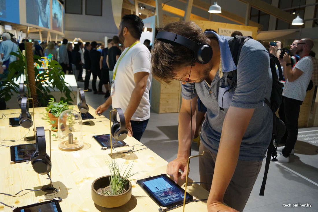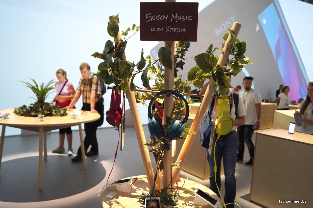 Помимо смартфонов, на стенде Sony хватало других устройств. Наушники, дорогущие плееры, телевизоры, мини-проекторы под управлением Android, шлем виртуальной реальности для PlayStation. По интерактивности и востребованности среди посетителей экспозиция японской корпорации оказалась среди лидеров. Во всяком случае столько людей, сколько было здесь, мы видели только на стендах Samsung и LG.