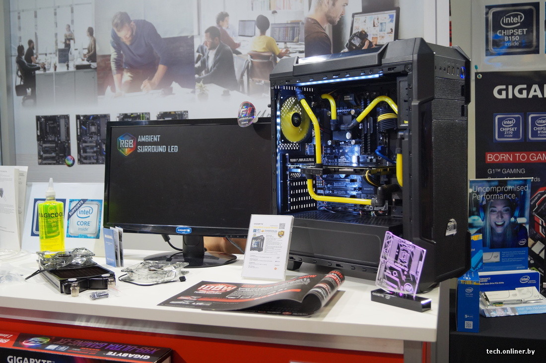 Интересно было на стенде Acer. Вот взгляд и объектив камеры прямо приковывает монструозный 21-дюймовый ноутбук Predator 21 X. Честное слово, настоящий монстр! Огромный, тяжеленный (8 килограммов!), крайне брутальный. Трушным геймерам должно понравиться. Таких, правда, наберется немного, потому что каждый экземпляр этого чуда будут делать по индивидуальному заказу.