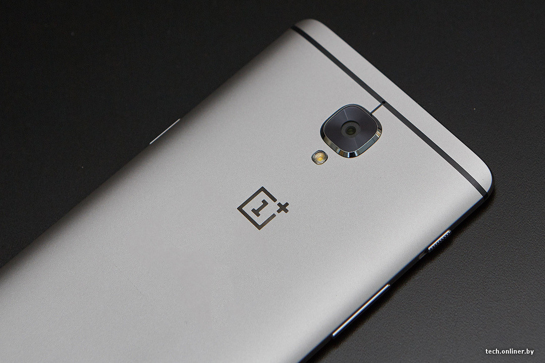 Сзади, благодаря характерным пластиковым вставкам для обеспечения работы антенн, OnePlus 3 походит на аппараты HTC. Глазок 16-мегапиксельной камеры находится на ощутимом возвышении и прикрыт защитным стеклом. Под фотомодулем — вспышка. Также на металлической поверхности имеется утопленный логотип OnePlus.