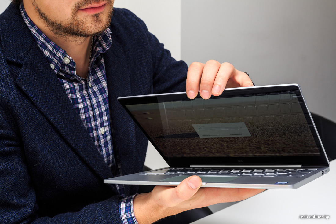 Корпус «мибуков» может показаться чуть более грубым, чем у «макбуков». Последний заметно сужается по краям и потому кажется более тонким. Ноутбук Xiaomi имеет совсем прямоугольный, рубленый корпус. Это не минус, а отличительная особенность, по которой давние «маколюбы» заподозрят неладное: китайский компьютер очень легко спутать с «яблочным» конкурентом до того момента, пока не будет открыта крышка. На месте и выемка для пальцев, упрощающая поднятие экрана (а откидывается он примерно на 130 градусов).