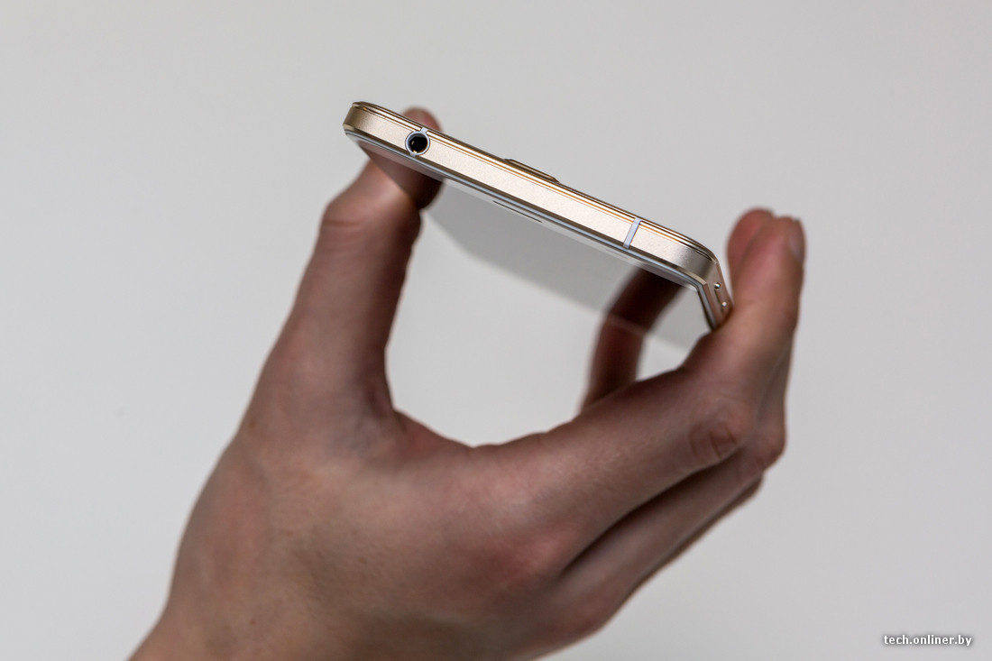 В верхней части сзади находится немного возвышающийся модуль 12-мегапиксельной фотокамеры со вспышкой. Под ним разместился чуть утопленный в корпус сканер отпечатков пальцев. Эргономика в этом месте однозначно хромает: на ощупь определить, где какой из элементов, сложно, ведь расположены они очень близко друг к другу. Поэтому палец постоянно «поглаживал» камеру и лишь потом отправлялся ниже.