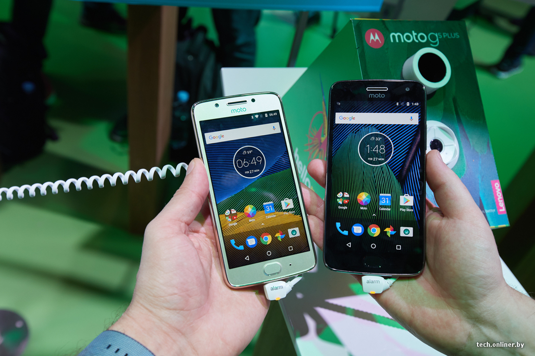 Коммерческую концепцию ложбинки вместо кнопки Home на выставке продемонстрировала и Lenovo. Чем же производителям так не угодила эта злосчастная кнопка и почему от нее нельзя просто отказаться? Moto G5 и G5 Plus — раздобревшие «толстячки», которые обходятся уже без дополнительных модулей в виде динамиков или камеры, — выделились разве что своим большим, круглым и выпирающим модулем камеры. У G5 — 13 Мп, у G5 Plus — 12 Мп. Оба с бюджетненькими процессорами, без претензий и с соответствующей ценой — 200 евро для первого и 230 евро для второго.