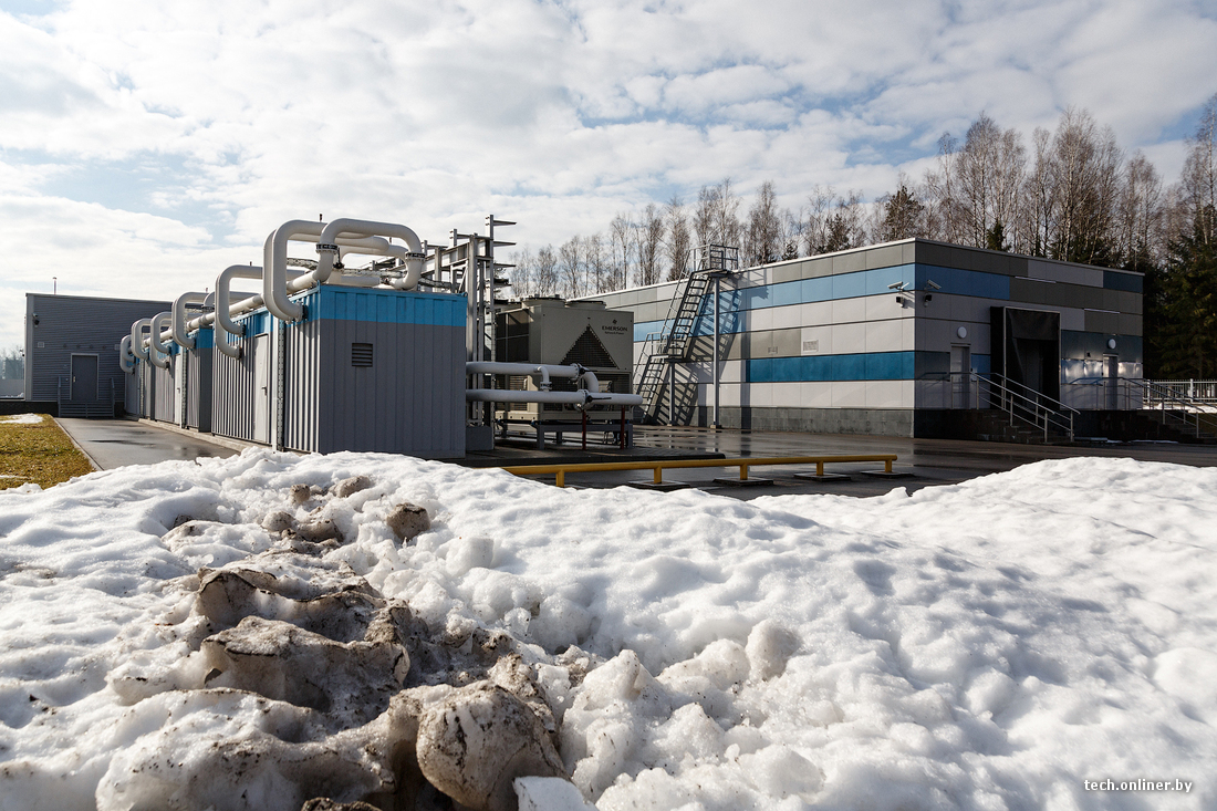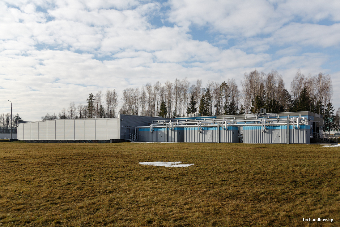 На улице также можно увидеть трубы, по которым циркулирует 32 тонны охлаждающего состава на основе этиленгликоля. По требованию законодательства на территории ЦОД имеются бассейны с водой и насосной станцией, хоть и применять эту жидкость для тушения не планируется.