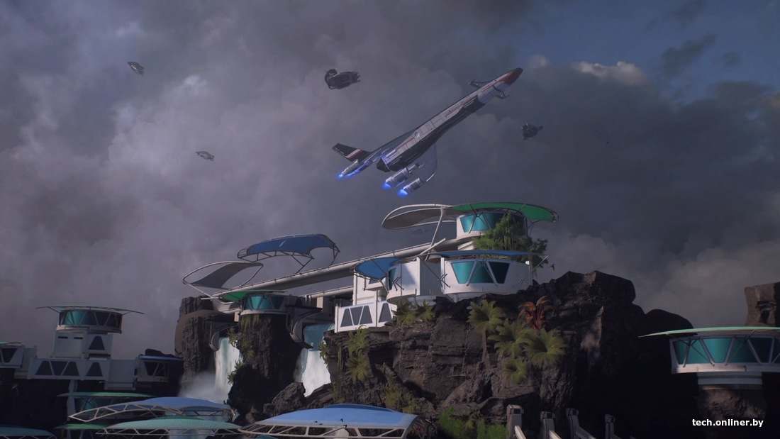 Зато эстетика космоса сохранилась. В игре красивые локации, инопланетная архитектура сооружений достойна высшей похвалы, во время перелета от одной планеты к другой палец рефлекторно тянется нажать кнопку снятия скриншота. Но и тут BioWare умудрилась напортачить. Постепенно длительные перемещения между небесными телами надоедают, а пропустить эти заставки нельзя.