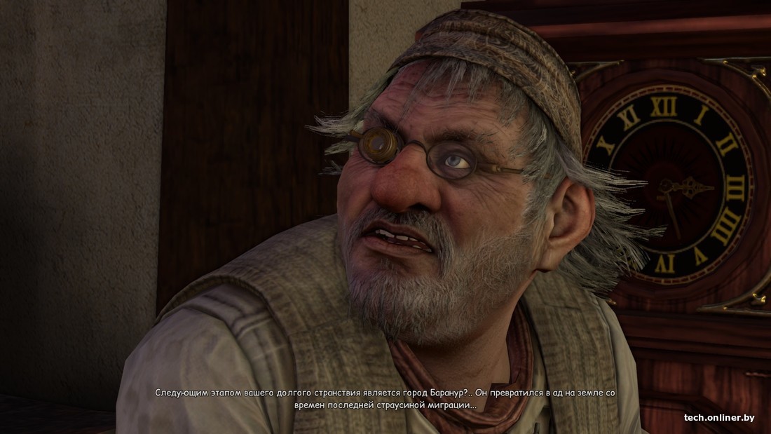 Главная головоломка тут — не найти чертову цепь или выяснить, во сколько часовщик изволит ужинать, а совладать с управлением. Когда это с трудом получится, можно приступить к, собственно, изучению игры. Syberia 3 хоть и сдала в плане персонажей, но все еще затягивает историей. Проблемы юколов принимаешь как собственные: то страусы рискуют напиться отравленной воды, то персонажу необходимо помочь с протезом ноги, то что-то еще. Из второстепенных героев, пожалуй, лучшим вышел капитан теплохода: поначалу вечно пьяный, но если взять его «на слабо», то он здорово поможет и вообще проявит себя с хорошей стороны.