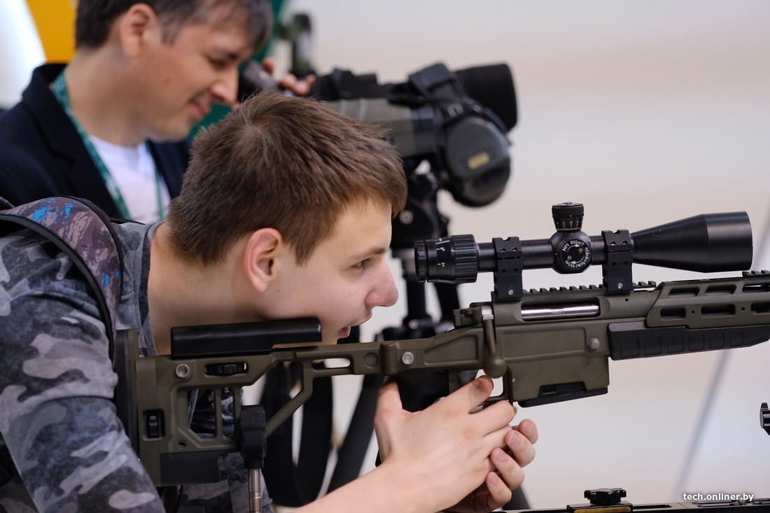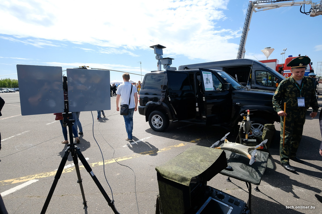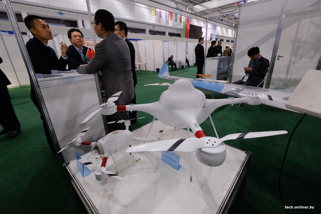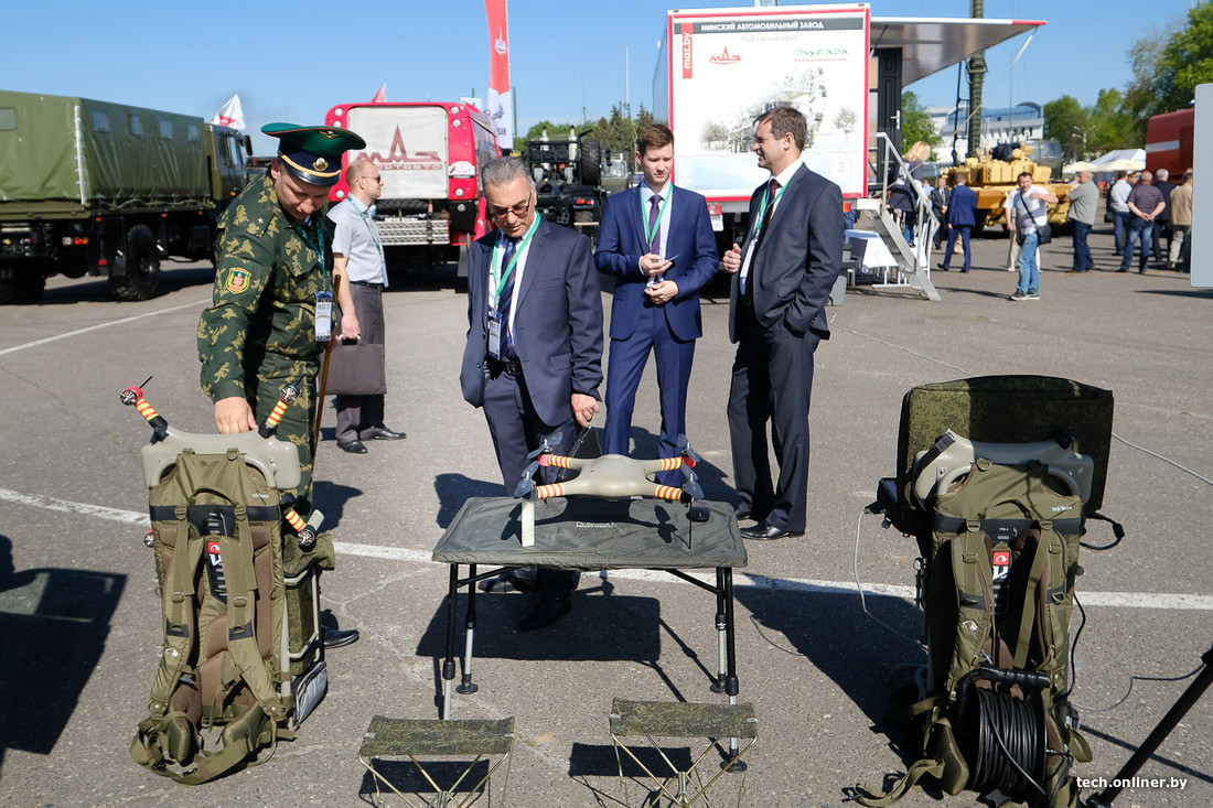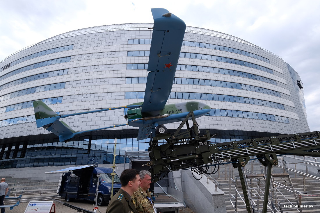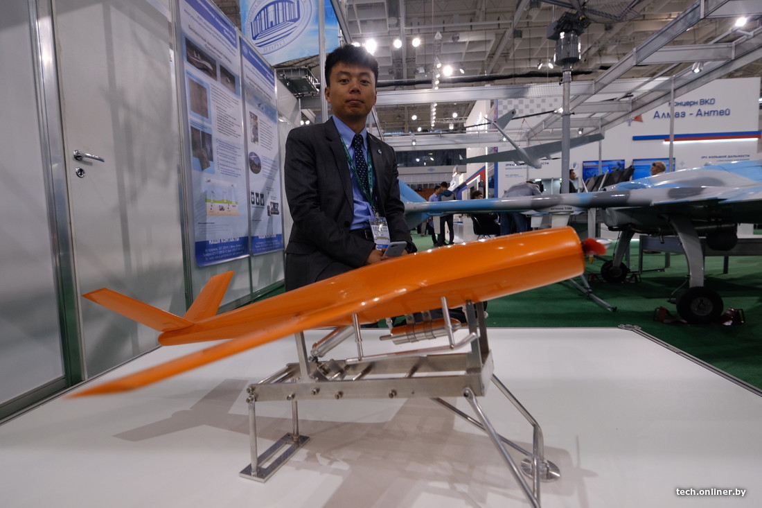 Стоит отметить, что под крышей комплекса очевидно превалировали дроны разных габаритов: от небольших (например, беспилотный авиационный комплекс «Шершень» от белорусской компании «Аэросистема»), которые поместятся в рюкзак, до огромных с размахом крыльев в пару метров. Например, «Бусел М50» не слишком крупный летательный аппарат, однако радиус его действия достигает 50 км, при этом в воздухе он может находиться до 2,5 часов (в зависимости от погодных условий). Здесь также присутствовал ударный беспилотник «Буревестник МБ», способный разгоняться до 200 км/ч и улетать на 300 км.