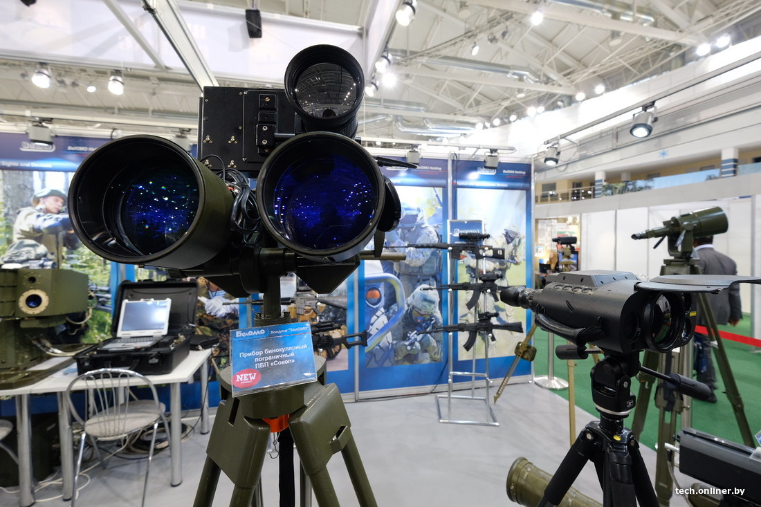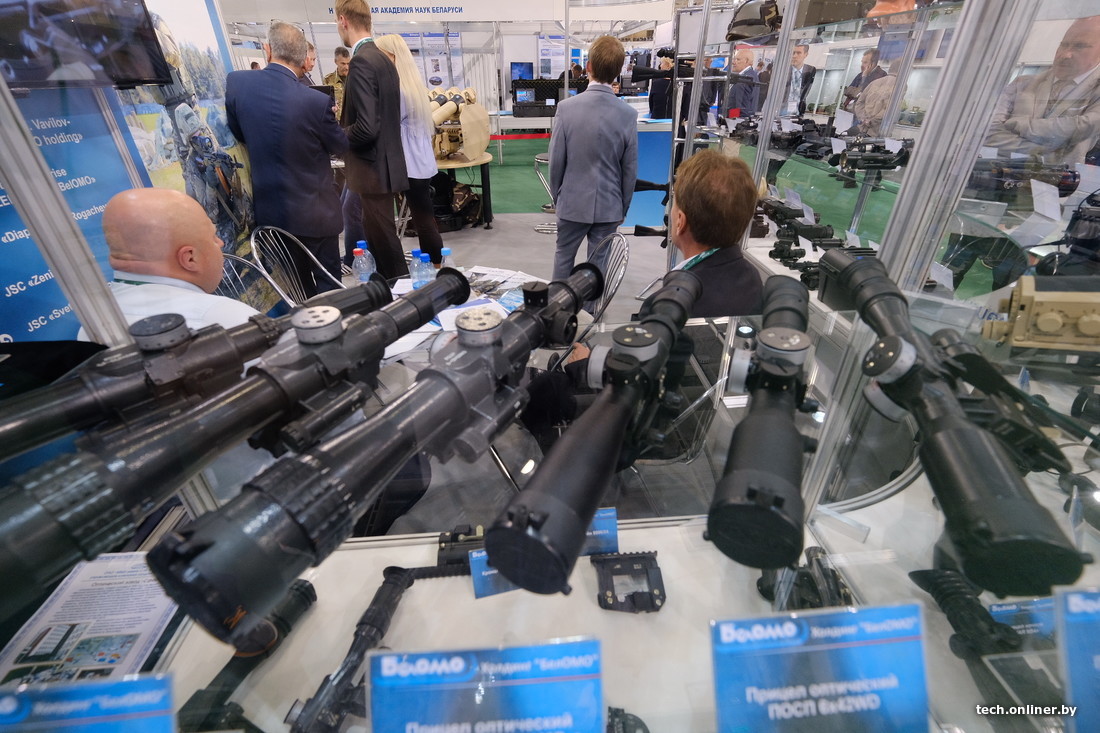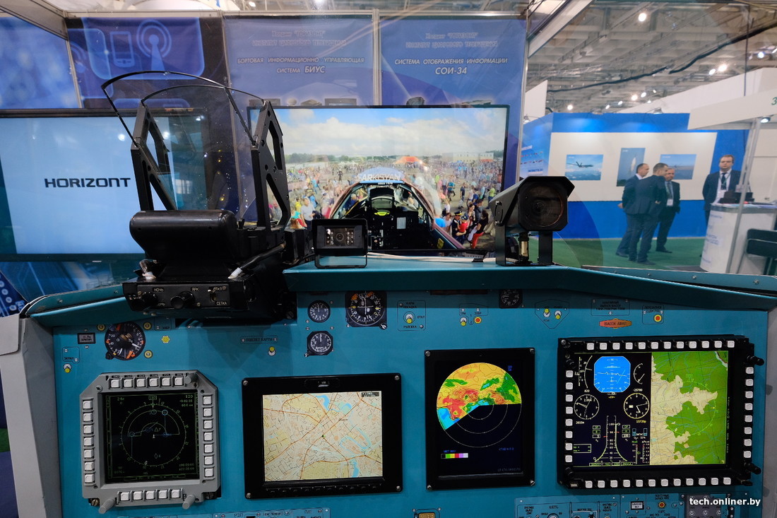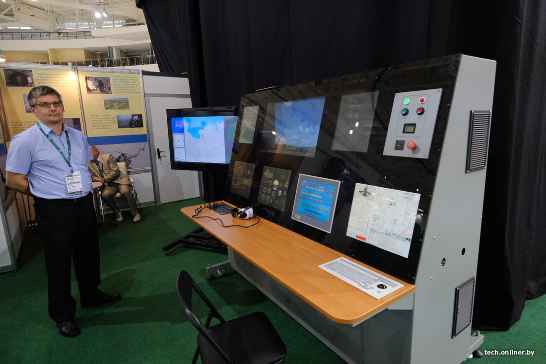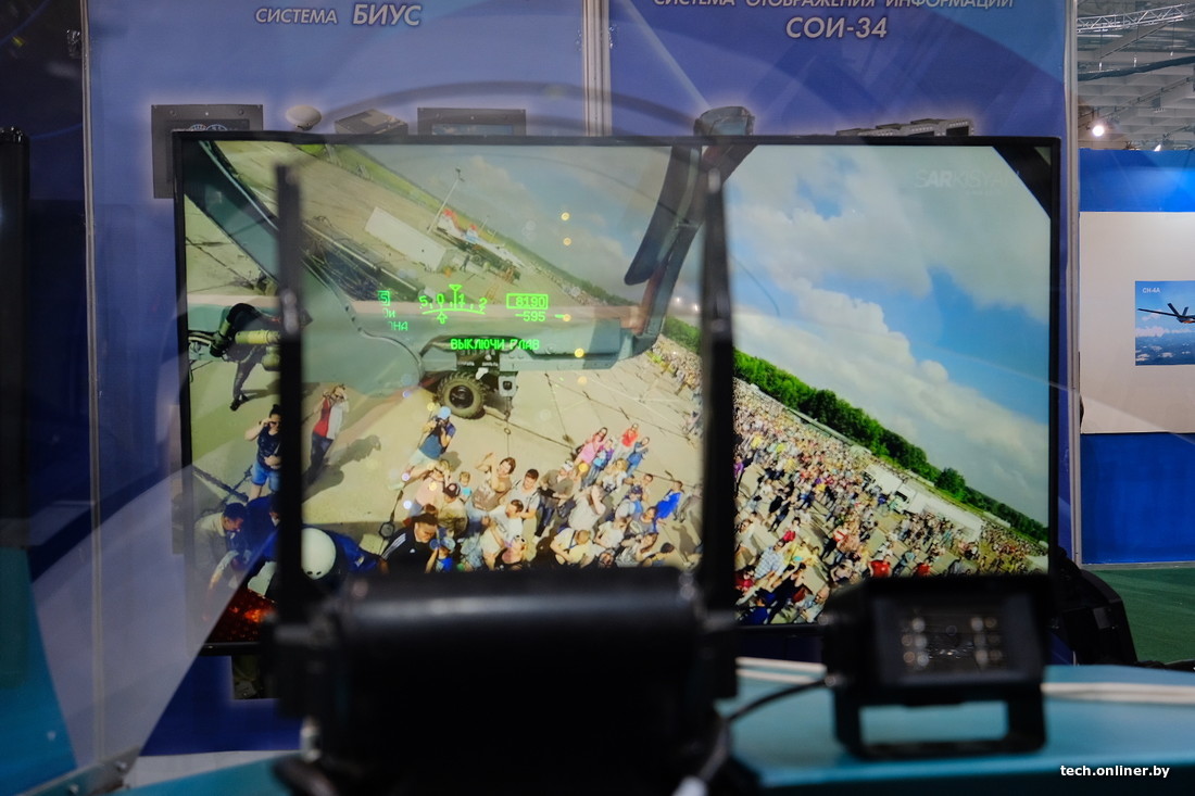 За очередным поворотом неожиданно показалась знакомая торговая марка — «Горизонт». И это были не телевизоры. Белорусская компания привезла на выставку навигационно-обзорную систему СНО-01, систему контроля и индикации СКИ-01, которые устанавливаются на автомобилях БелАЗ и могут быть адаптированы под другие большегрузные самосвалы. Рядом расположился стенд с коллиматорным прицелом для военных самолетов (а не для БелАЗов, как мы предположили вначале). Как рассказал нам представитель компании, «Горизонт» занимается поставкой оборудования в том числе для Су-34 и белорусских «Кайманов», также представленных на выставке. Это системы навигации, наблюдения.