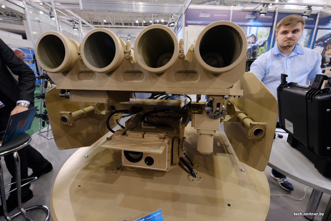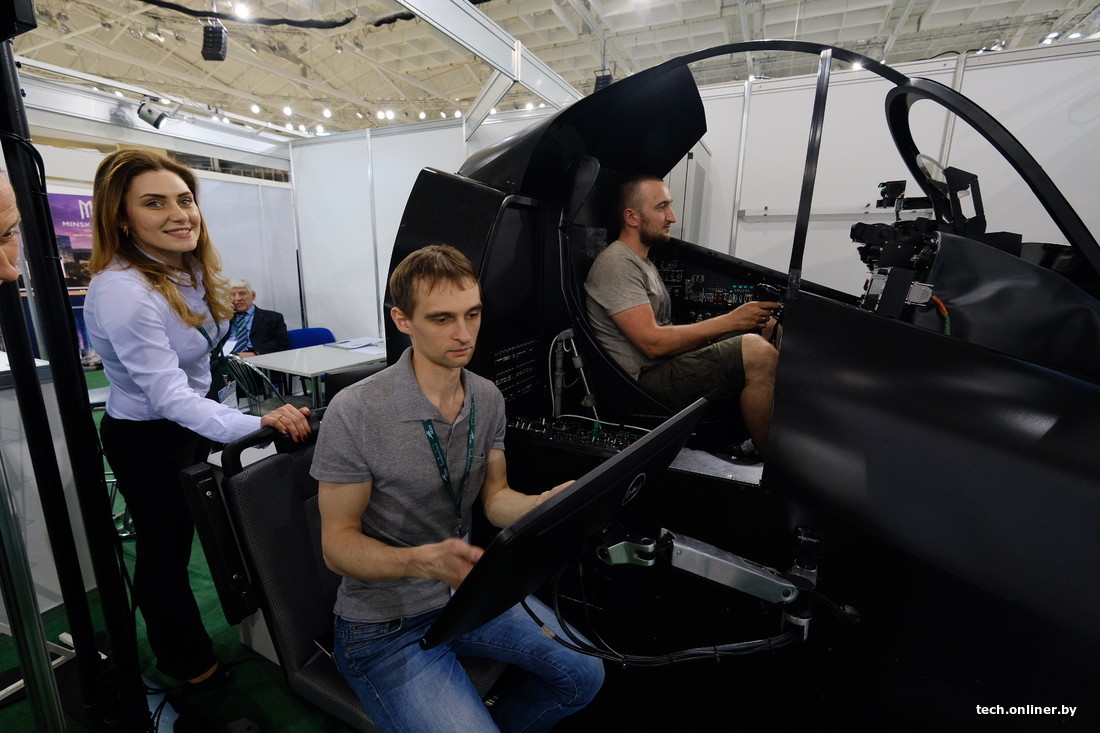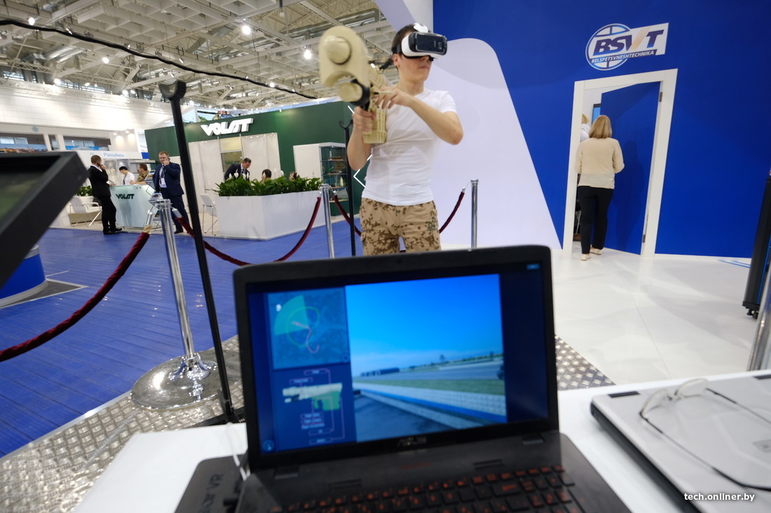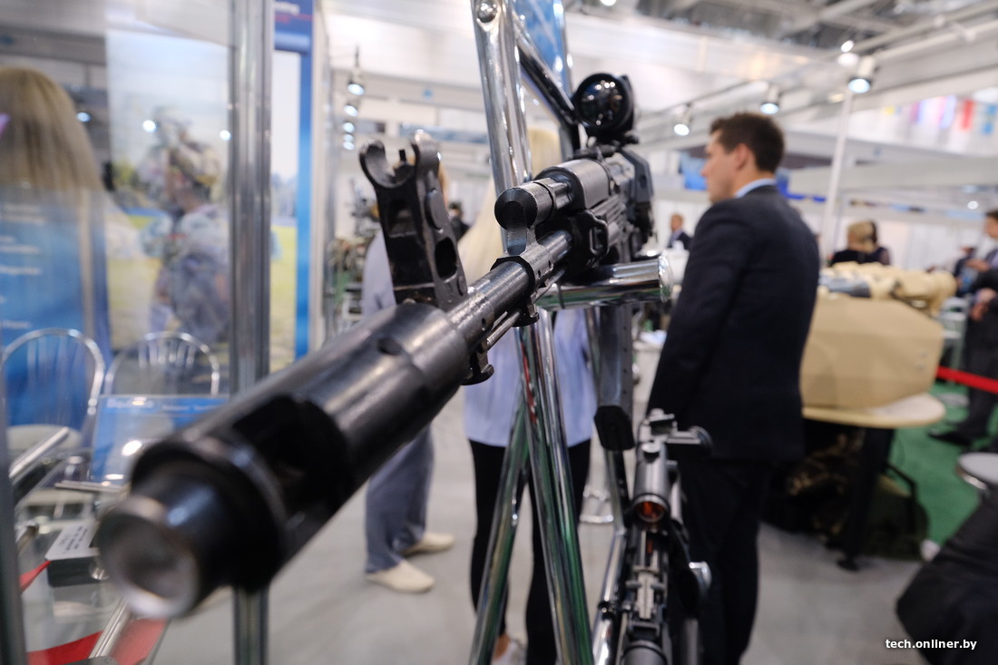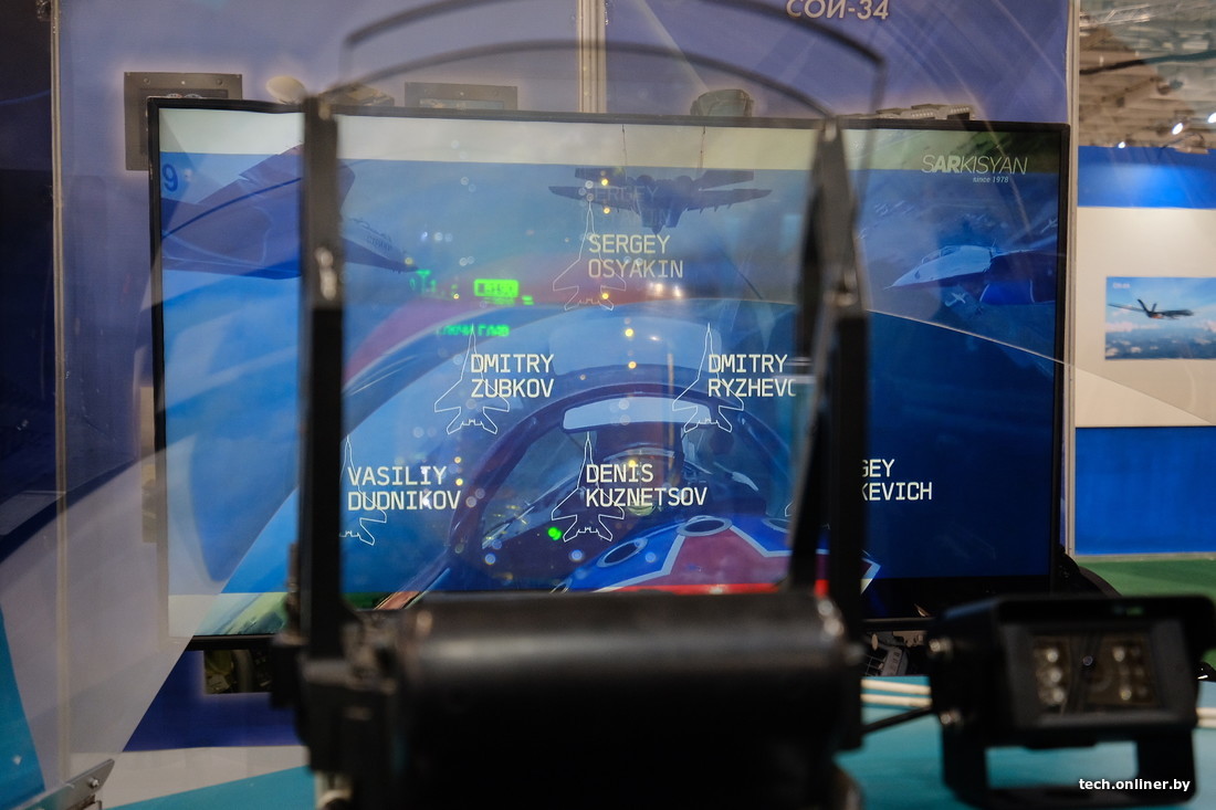 За очередным поворотом неожиданно показалась знакомая торговая марка — «Горизонт». И это были не телевизоры. Белорусская компания привезла на выставку навигационно-обзорную систему СНО-01, систему контроля и индикации СКИ-01, которые устанавливаются на автомобилях БелАЗ и могут быть адаптированы под другие большегрузные самосвалы. Рядом расположился стенд с коллиматорным прицелом для военных самолетов (а не для БелАЗов, как мы предположили вначале). Как рассказал нам представитель компании, «Горизонт» занимается поставкой оборудования в том числе для Су-34 и белорусских «Кайманов», также представленных на выставке. Это системы навигации, наблюдения.