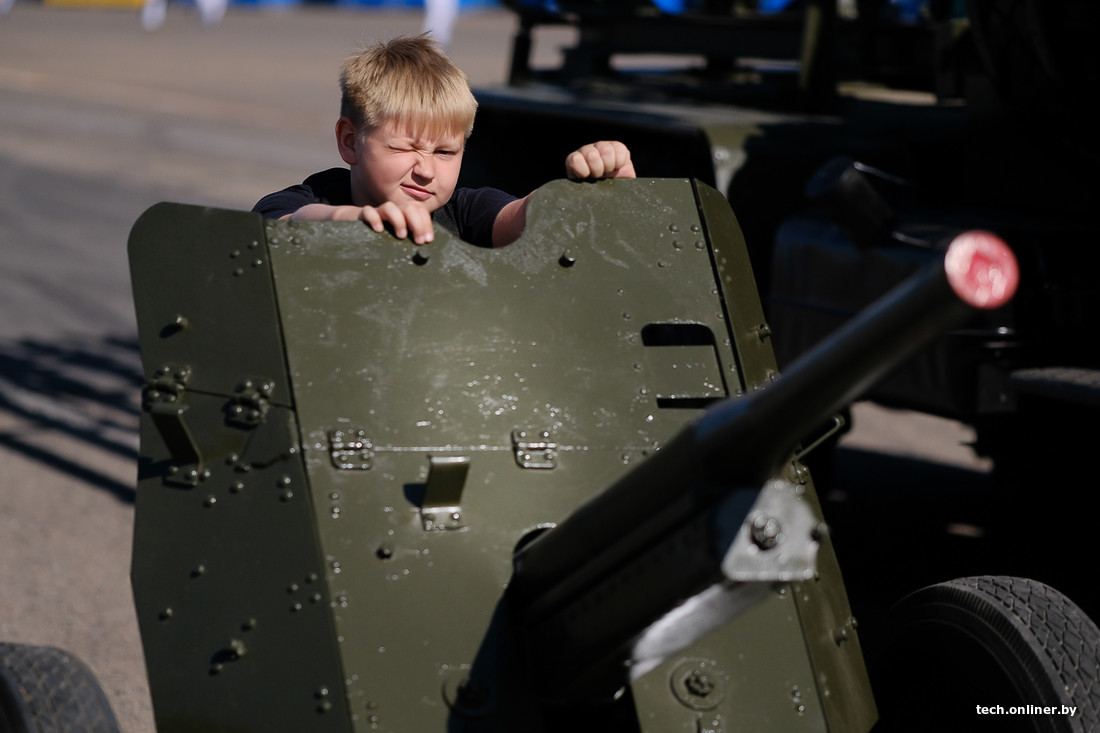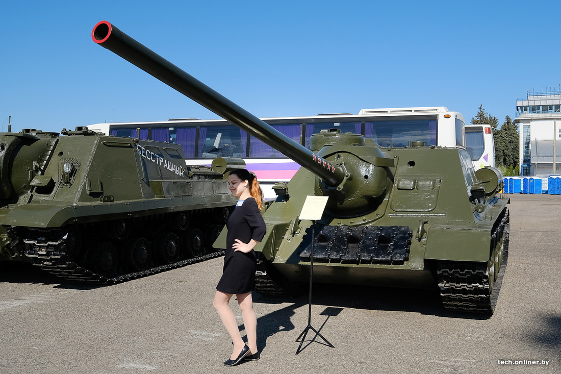 Среди прочего здесь выставлены образцы военной техники времен Второй мировой войны: танки, самоходки и артиллерия. Несмотря на преклонный возраст техники, она все же привлекала к себе внимание, и то и дело посетители подходили сделать памятное фото на фоне «старичков».