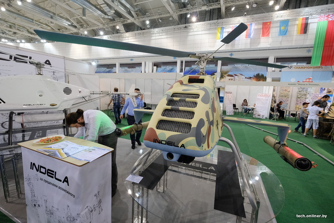 Грозный с виду аппарат с надписью на крыльях «руками не трогать» (хотя очень хотелось). И таких на выставке оказалось немало: «Каспер», «Альбатрос» и другие. А беспилотный вертолет Indela-I.N.Sky AT предназначен для проведения радиационной разведки, его «коллега» — Indela-I.N.Sky BUR — является ударным беспилотным вертолетом.