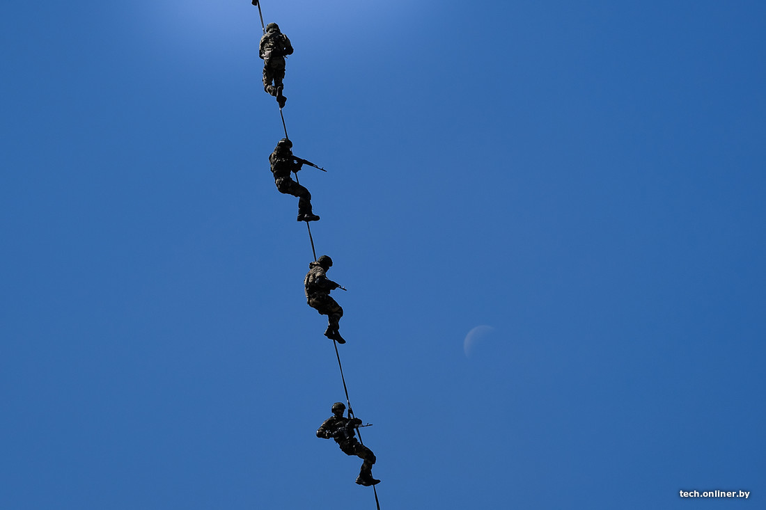 Не менее зрелищным оказалась имитация отражения атаки бандформирования — с десантированием с вертолета, участием «Каймана», стрельбой, взрывами и эффектным финалом. Зрителей пришлось попросить вернуться в безопасную зону — всем хотелось запечатлеть происходящее на смартфоны и планшеты с максимально близкого расстояния.