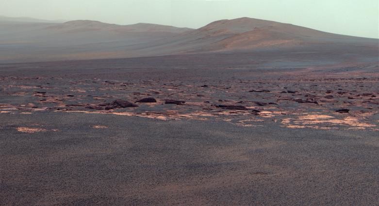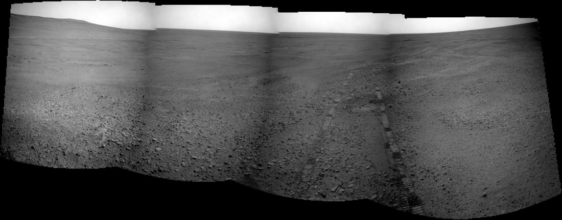 Цветные фото Марса — это здорово, но лично автору статьи в фотографиях марсоходов нравится другая классная фишка — панорамы. Человеческий мозг очень зависим от перспективы, и оценить красоту и глубину ландшафта по фото отдельной его части бывает довольно сложно. Панорамы — совсем другое дело. Во время каждой остановки Opportunity делает серию снимков, которые позже можно сложить в общую мозаику. Делается это для ознакомления с окрестностями и для планирования дальнейшего пути. Каких-то определенных правил и подсказок в создании таких марсианских мозаик нет. Opportunity делает их довольно часто, и почти каждая серия снимков навигационных камер в рамках одного сола может в такую панораму сложиться.