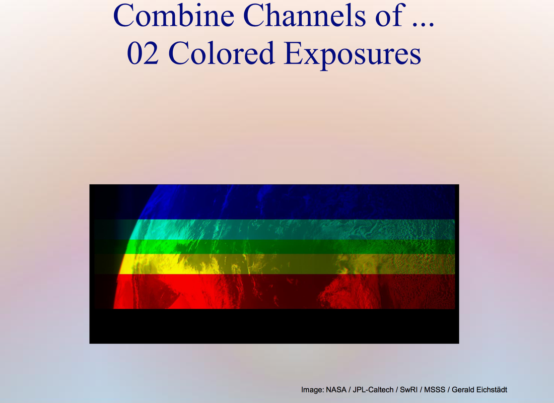 Цветное изображение из набора черно-белых снимков получается таким же образом, каким цвет формируется на экране вашего устройства или в картридже вашего цветного принтера — смешением базового набора цветов. Как уже говорилось выше, ISS фотографирует через набор фильтров. Все, что вам нужно, — найти последовательность кадров, сделанных через RED (красный), GRN (зеленый) и BL1\BL2 (синий) фильтры, и сложить их в соответствующем порядке в Photoshop или GIMP через вкладку «Каналы». Смешение каналов в правильной последовательности даст вам ваше первое цветное изображение.