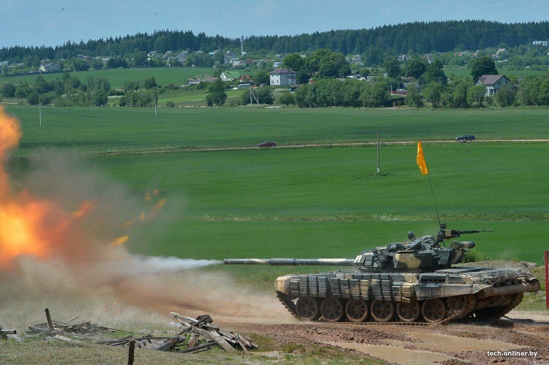 Соревнования между воинскими подразделениями проходили на боевых машинах Т-72Б с экипажем из трех человек. Эти танки весят 44,5 т и оборудуются двигателями В-84-1 мощностью 840 л. с. По дороге с твердым покрытием такая машина может развивать максимальную скорость в 60 км/ч. При емкости баков в 1200 л, на 100 км грунтовой дороги расходуется 260—450 л (в зависимости от условий). На преодоление аналогичной дистанции по дороге с твердым покрытием затрачивается в среднем 240 л.