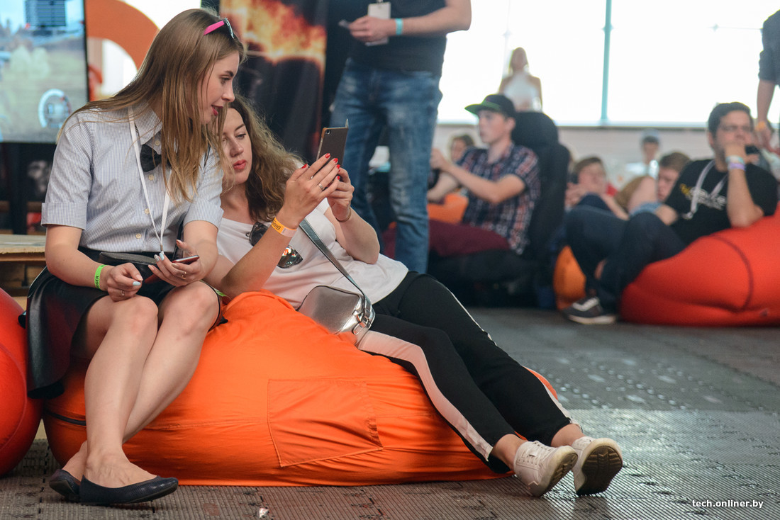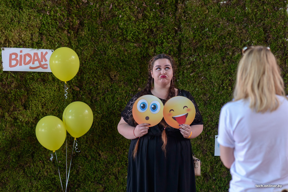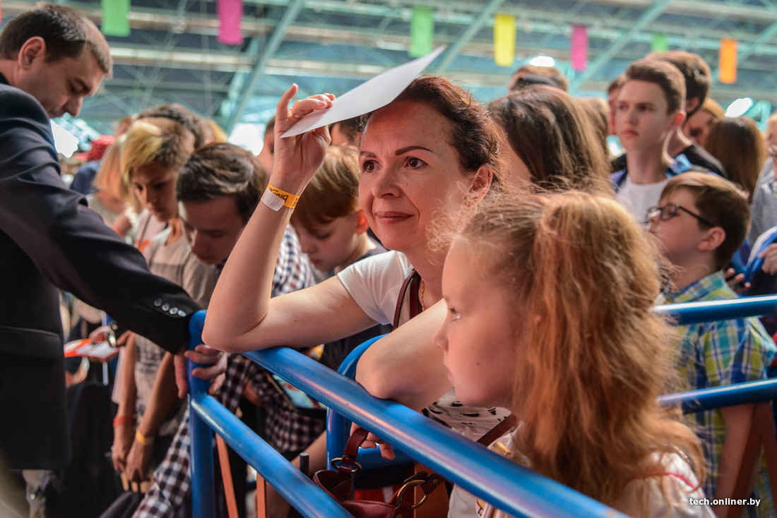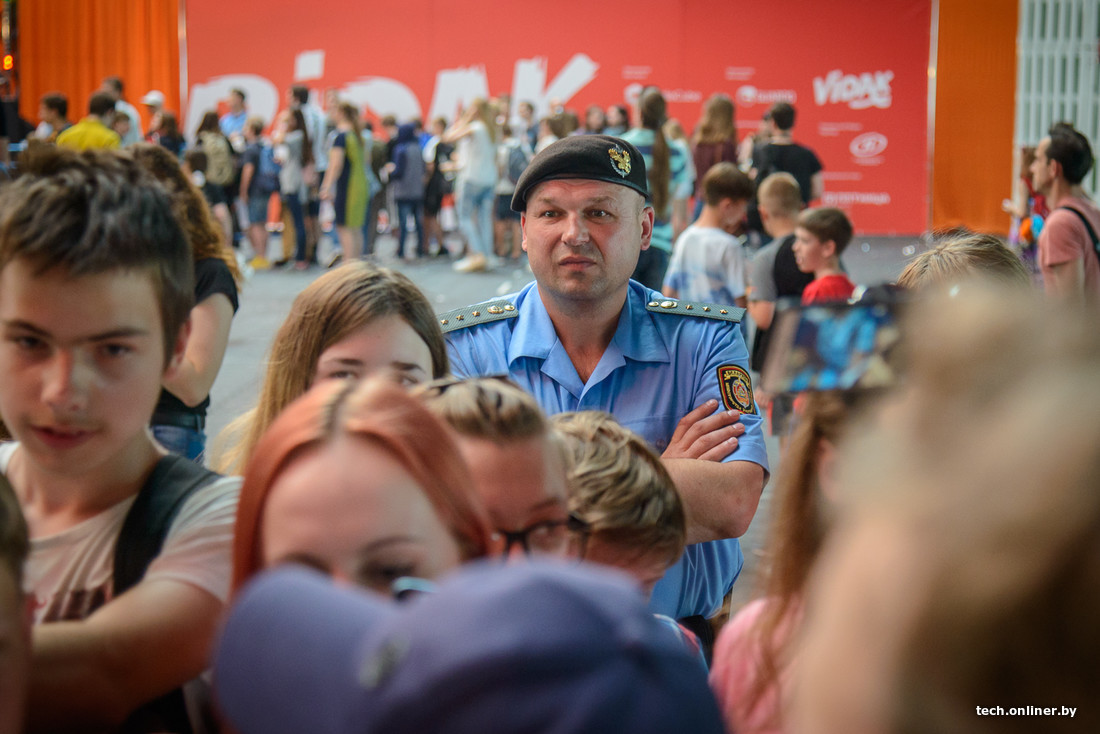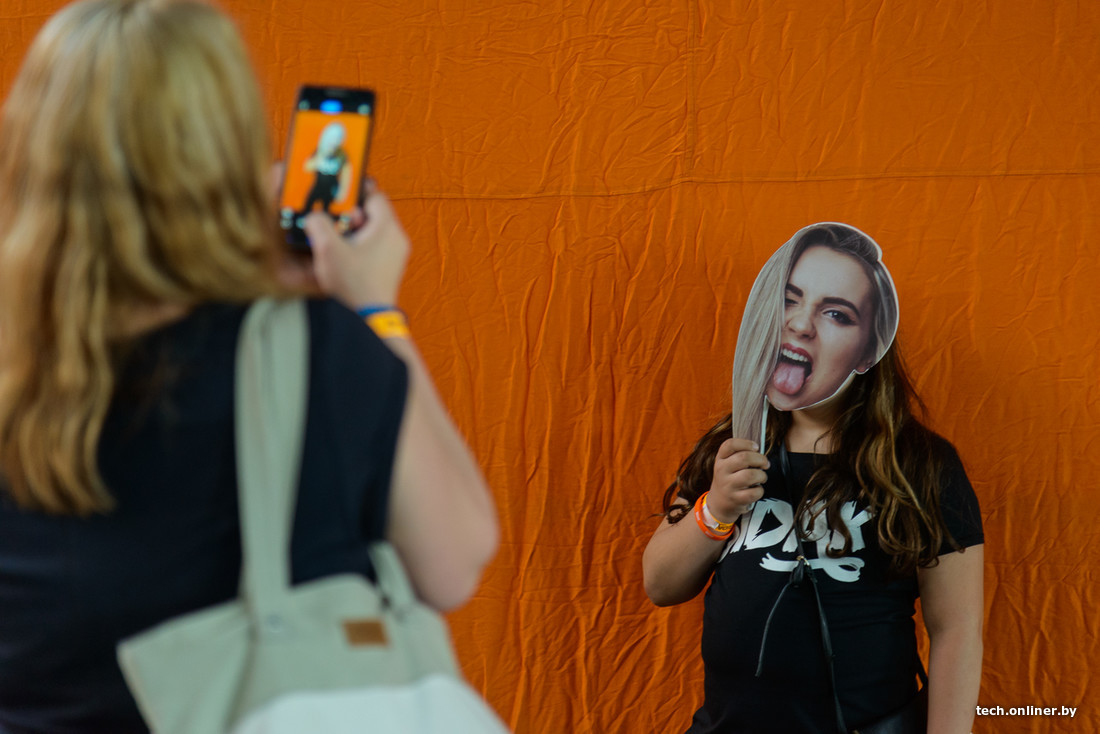 Аудитория на фестивале разномастная, костяк публики — самостоятельные молодые люди с «айфонами» и зеркалками, преимущественно от 9 до 14 лет. Недалеко от входа видим длиннющую очередь, растянувшуюся на полсотни метров. Ребята терпеливо ждут, чтобы воплотить мечту — получить заветный автограф от Влада Бумаги и Стаса Давыдова.