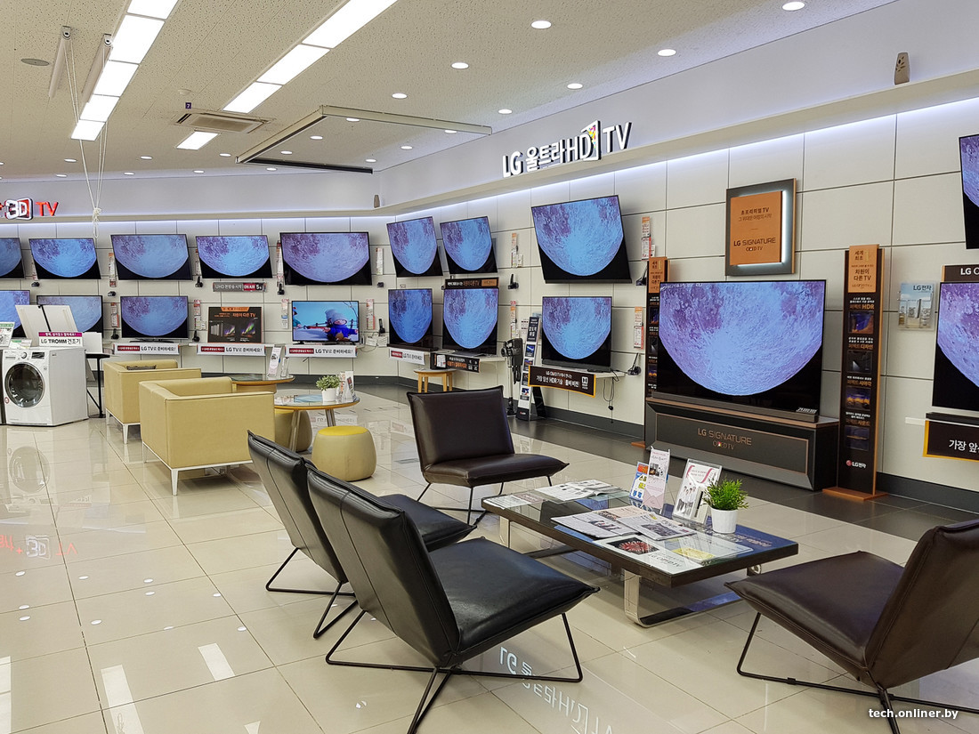 После почти девятичасового перелета прибываем в самый большой в Корее аэропорт Инчхон. Здесь чисто — совсем как у нас. Представители LG первым делом ведут в фирменный магазин компании, где представлены последние новинки корейского производителя. Многих устройств в Беларуси нет — сразу видно, что предпочтения местного населения заметно отличаются от наших.