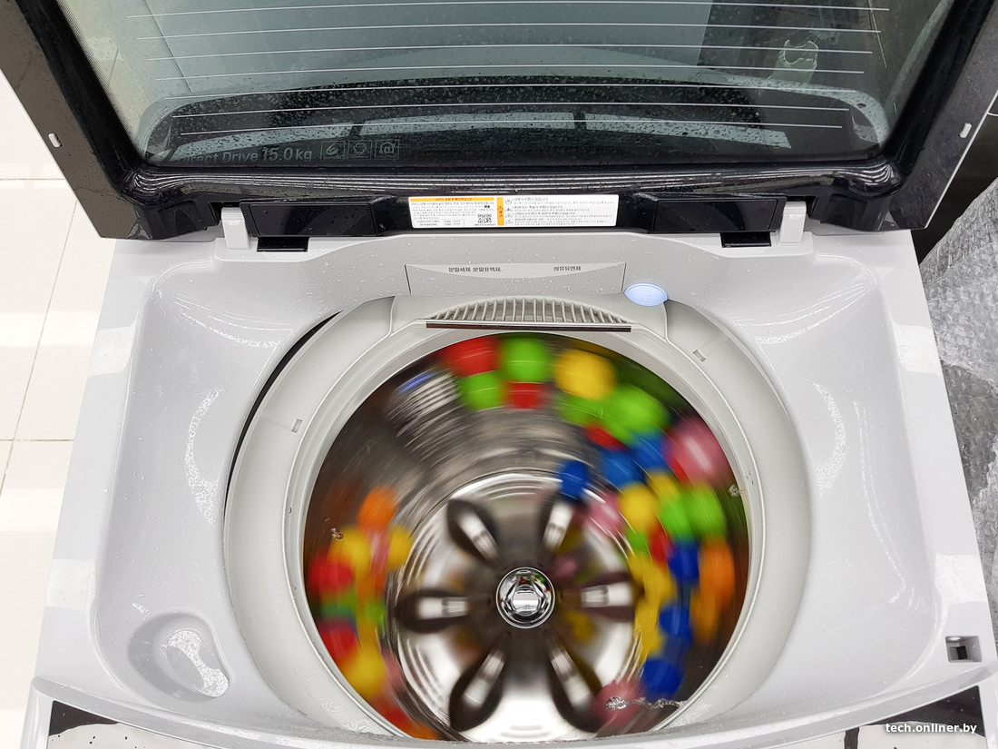 Интересной технической особенностью аппарата является наличие второго барабана. Он расположен у основания и предназначен для стирки небольшого объема белья. Работать могут как оба барабана вместе, так и каждый по отдельности.